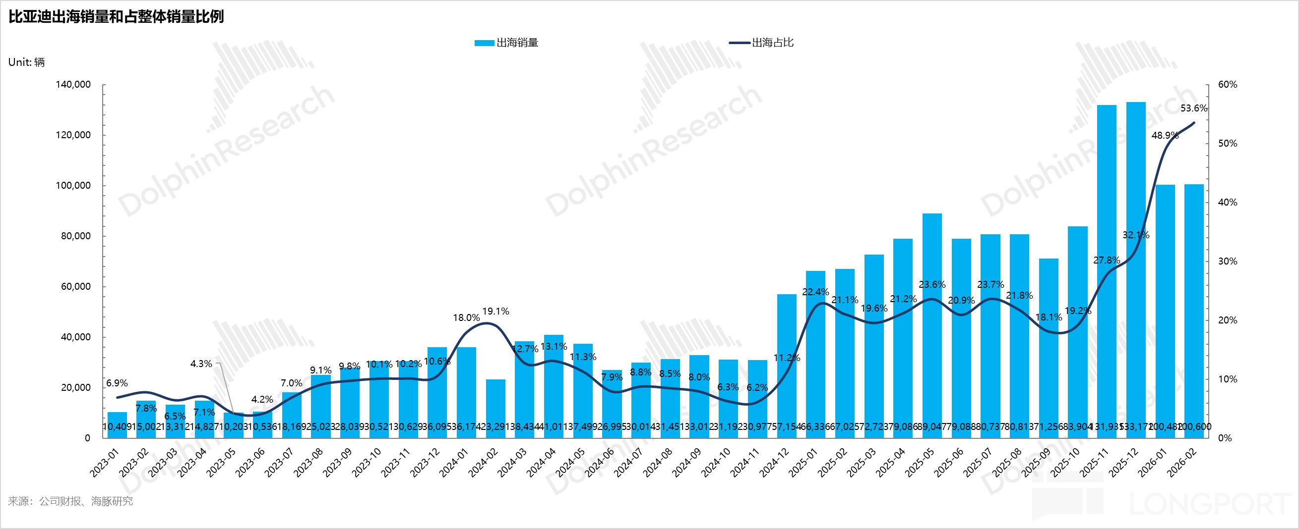 進入2026年,在1-2月國內大盤因購置税退坡等因素承壓之際,海外銷量依然維持同比高增態勢,其佔總銷量的比重一度飆升至51%,形成了極強的結構性支撐。