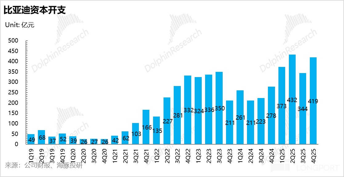 b. 攤折成本明顯稀釋: 從2025年下半年來看,折舊與攤銷(D&A)佔銷售收入的比重從上半年的9.4%顯著下滑至6.8%(下降2.6個百分點)。這既得益於產銷規模的擴大,也與前期部分資產折舊年限拉長有關,釋放了部分毛利空間。不過,隨着四季度公司為海外本土化產能及新一代電池工廠重新加大資本開支(Capex),未來的折舊壓力仍需觀望。