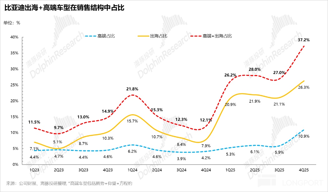 隨着四季度海外銷量佔比快速提升至26.3%,這部分高價車型成為穩住整體ASP不至大幅下滑的 “壓艙石”。