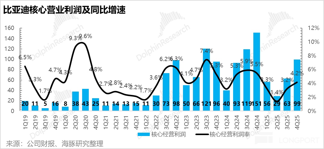 但去除這塊業務來看,最核心的整車業務貢獻淨利潤約 90.4億元,雖低於市場預期的 96億元,但得益於單車毛利的邊際改善,整車業務淨利率環比仍穩步回升了約 0.5 個百分點(至 5.0% 左右)。