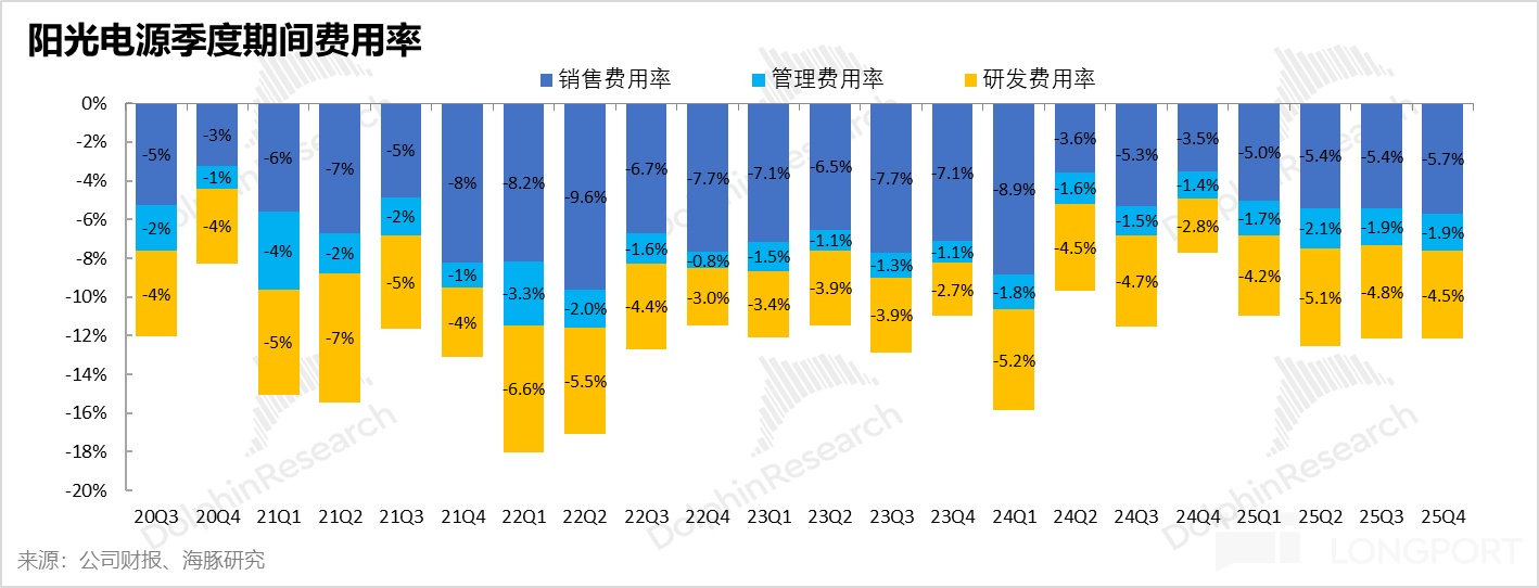 戰略端:公司主動 “棄量保價”,管理層亦坦言,國內户用市場大幅萎縮,且公司在戰略上選擇了主動放棄部分 “負毛利” 的內卷項目。與儲能業務的邏輯如出一轍,陽光電源正在將資源與重心全面向高價值的海外市場傾斜。