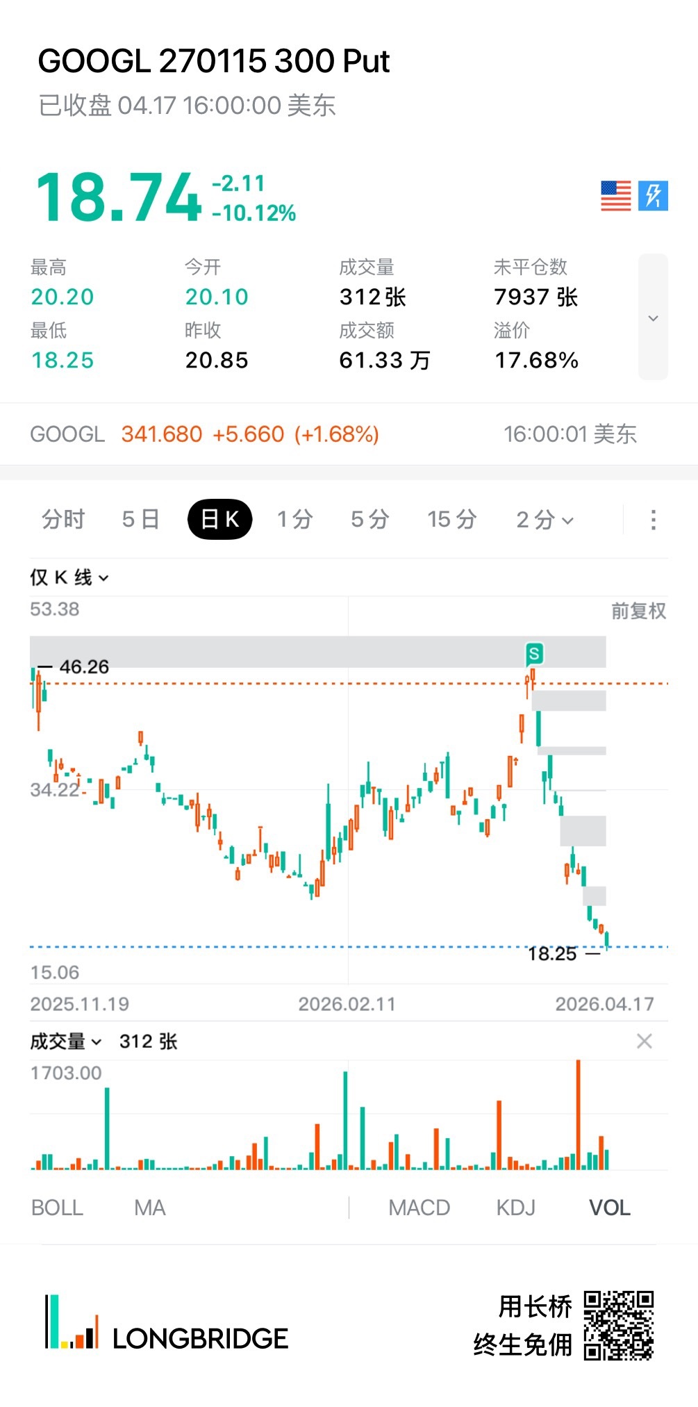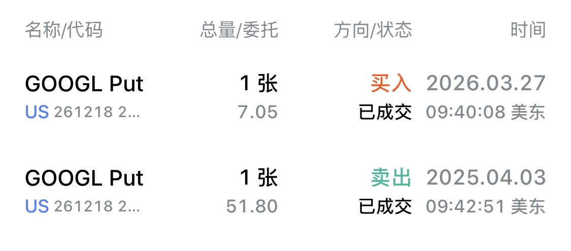 到了 27 號,雙方開始放垃圾話,大家都覺得要進入地面戰爭時,我先把去年當時貿易戰開打時賣的 googl 261218 200 put 平倉,接着再賣了一張 googl 270115 300 put,我覺得到了明年年初也跌不到 300 了。順便我把 9 天前買的 call 給平倉了,已經賺到一半的權利金了