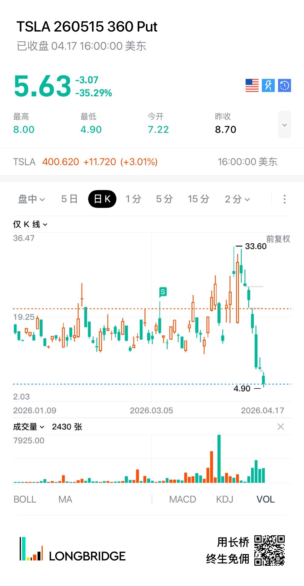 同時恥辱性的把 tsla 260618 700 call 清空了,這個期權做的是最差的。