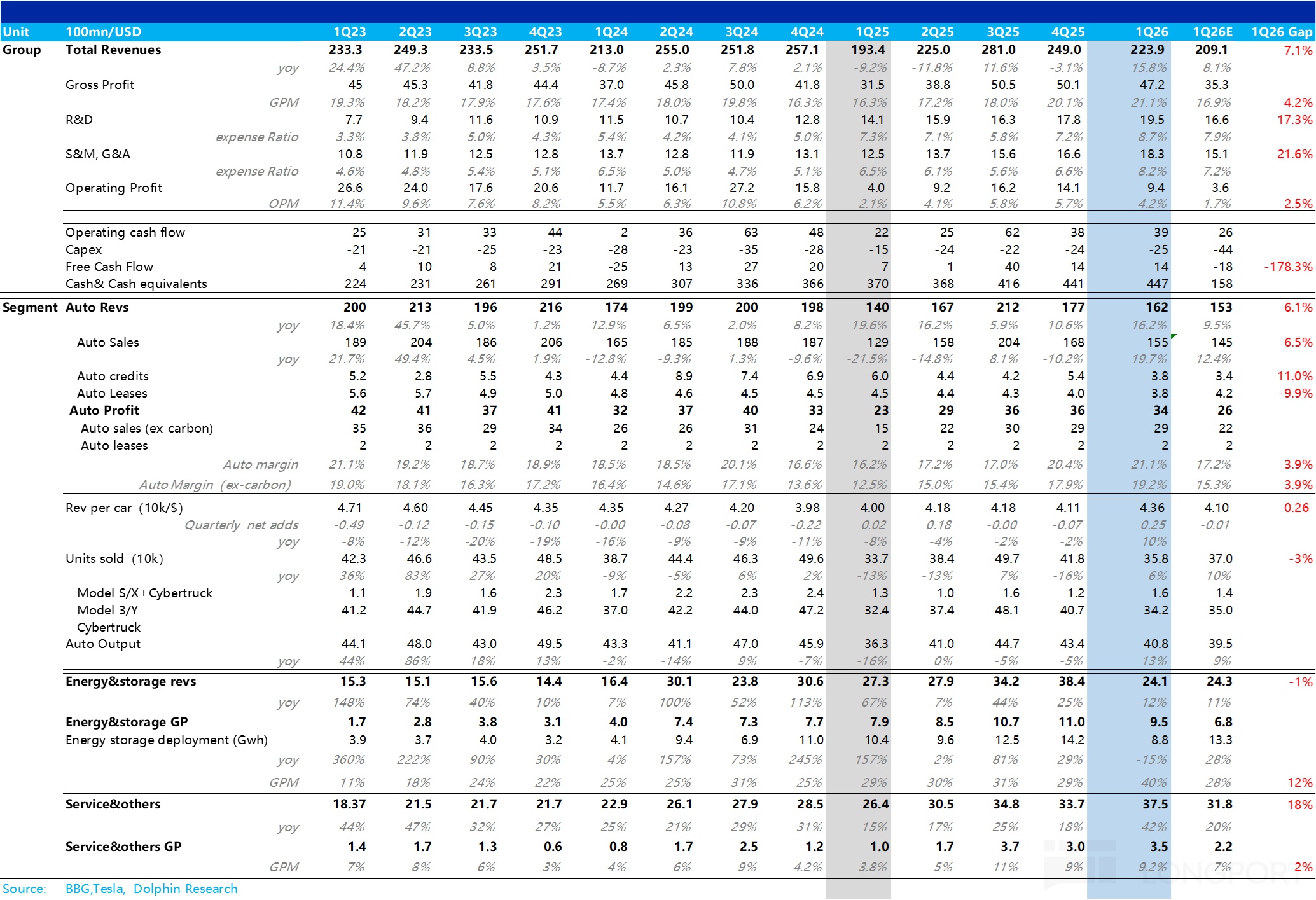 2. 汽車毛利率(不含積分):環比從 17.9% 提升至 19.2%,但包含約 2.3 億美元保修真實調整一次性收益及部分關税減免。利率補貼成本前置確認,若利率持續上升將繼續拖累毛利率。