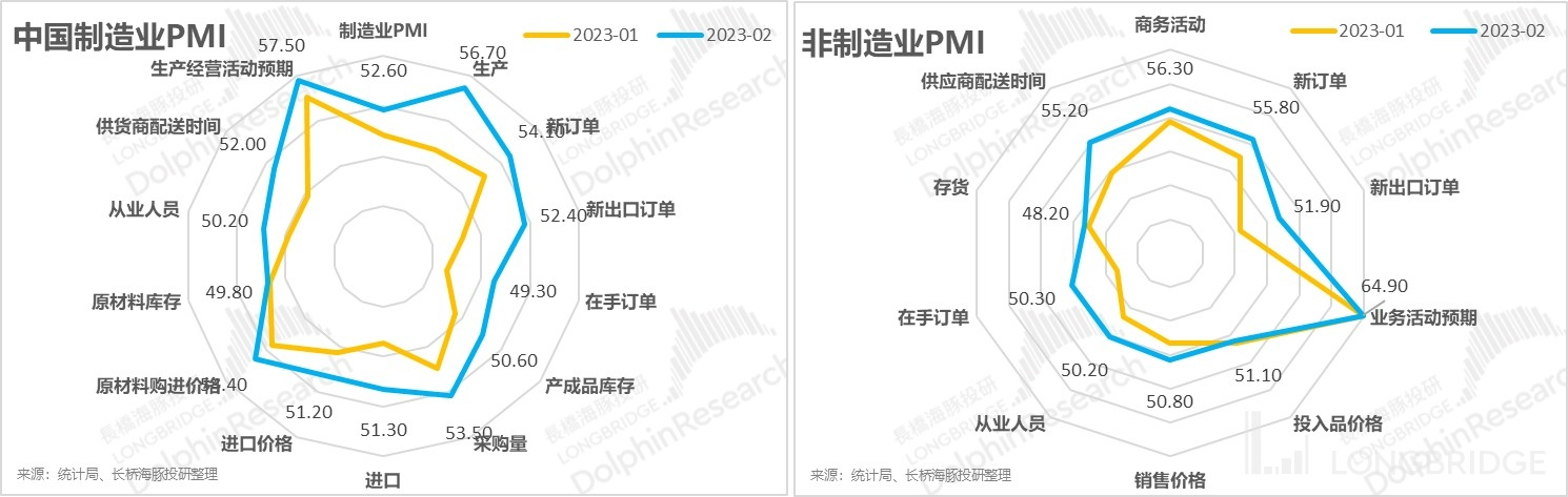 這個角度,上週 PMI 喜報傳來,尤其是製造業的 PMI,除了持續高漲的生產經營活動預期,其他關鍵數據基本全面重回擴展該區間,尤其是生產、新訂單、採購量等等。領先指標跑步跨過 50 的分水嶺,預示着經濟復甦有盼頭。