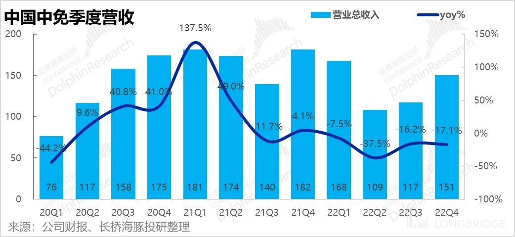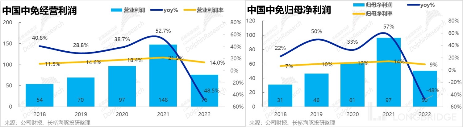 行業層面,海南離島免税銷售額在 2022 年同比下降了 29%,看似公司免税額下降的幅度更高。但由於中免旗下機場等渠道去年受影響的程度更高,上述比較是不公允的。