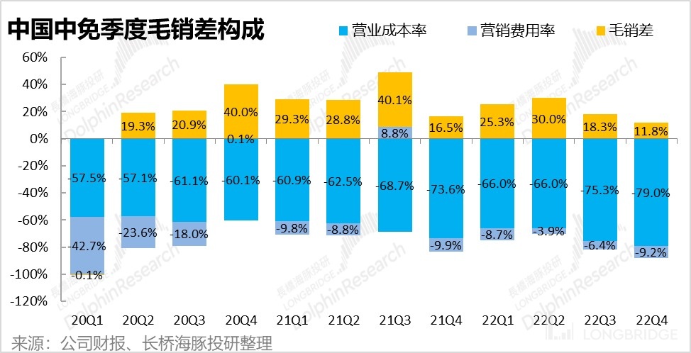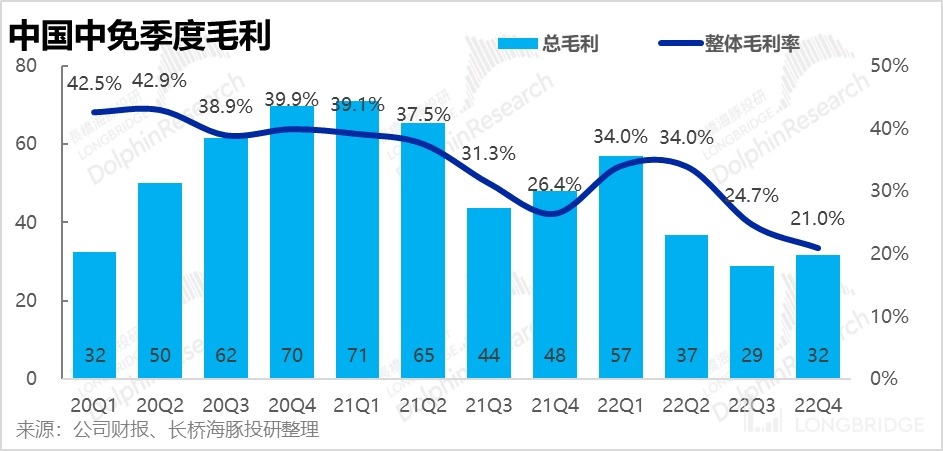 海豚君認為,線下免税門店因人流量大幅度減少,反而變向降低了免税運營商打折和競爭的意願。而另一方面,線上零售渠道的競爭更為激烈,中免提供了相當力度的折扣,且實際還替用户消化了有税模式下應付的税費,使得有税銷售的毛利大幅偏低。