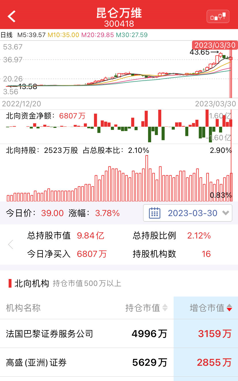 3、崑崙萬維:遊戲行業蓬勃發展,北向資金層層佈局。