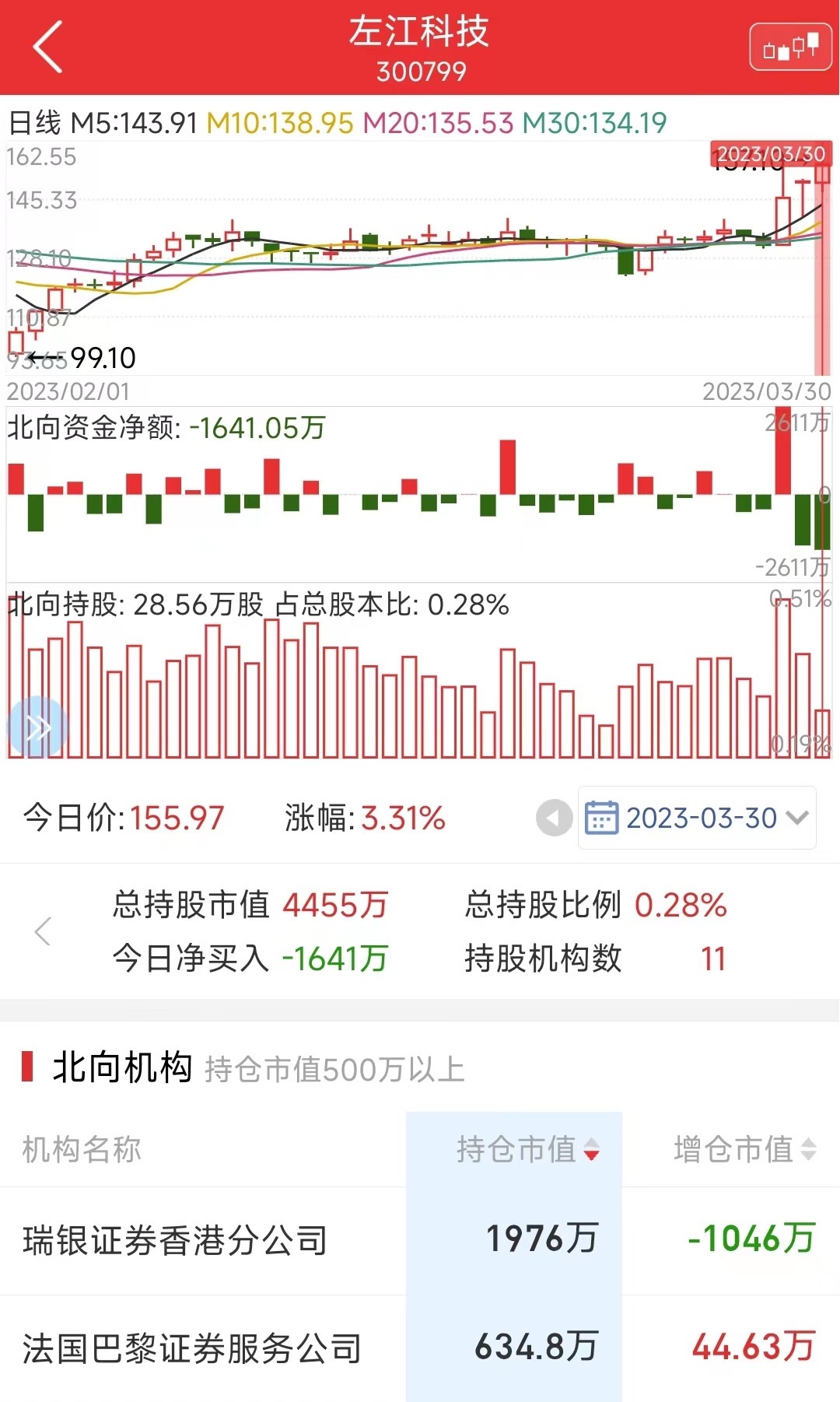 1、左江科技:芯片發展迫在眉睫,北向資金趨勢新高。