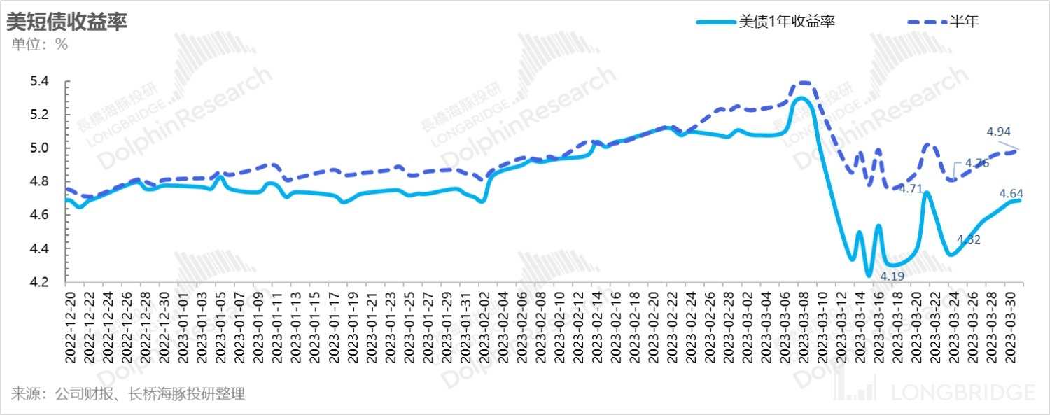 但整體上,海豚君認為,銀行業危機仍在前方高懸情況下而且市場已經計入了合理降息預期的情況下,仍要注意倉位控制,尤其是短期最新月份的就業數據又要到來,而歐佩克的不減產操作也會拉昇短期的通脹預期。