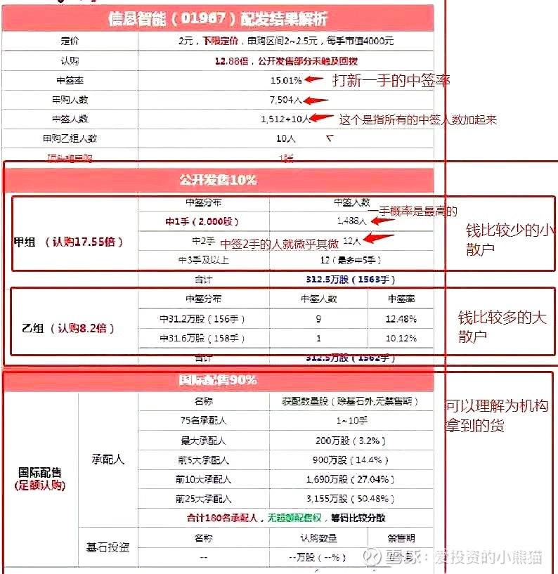熱門的搶手票中籤公開招股難中,國配就更加難了。那些熱門的大票很多都是這樣,可能説某一次你聯繫國配拿貨的那邊公司關係好,某一個股票拿到的貨特別多,然後以此為宣傳點誘導到大家去買國配,但問題是並不是所有的票都能這樣啊,換下一個票,關係不行了,他可能只拿一手的貨,甚至一手都沒的情況。