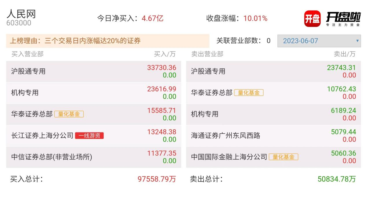 2、人民網:數據要素全面啓航,一線遊資重倉掃貨。